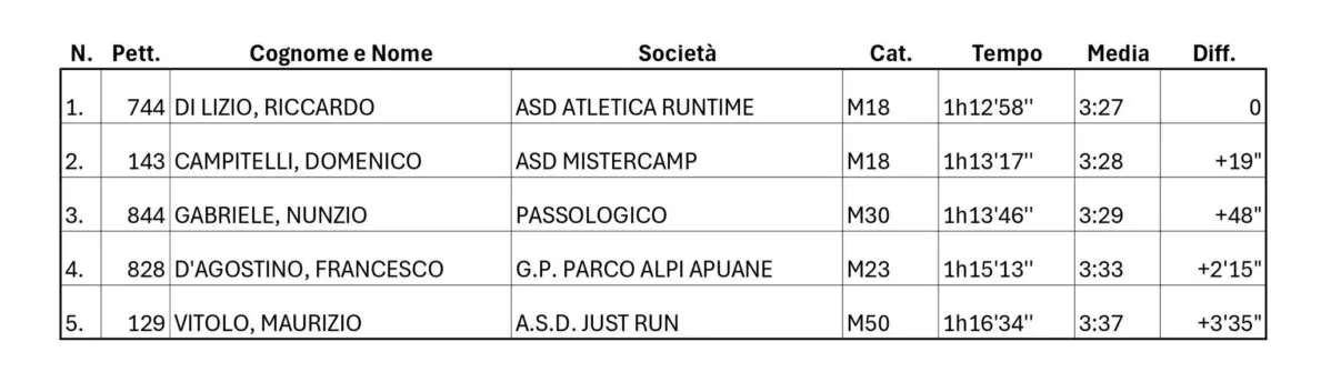 Di seguito la classifica aggiornata dei primi 5 atleti arrivati.